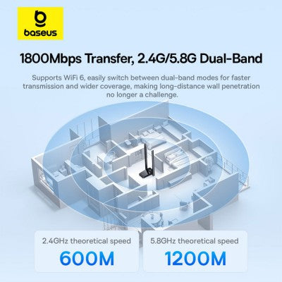 The USB Wi-Fi 5/6 Baseus FastJoy Series WiFi Adapter has a compact shape, which will make it easy to carry with you at any time, anywhere.