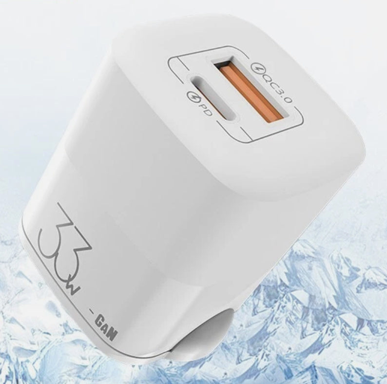 The 33W Fast Charge Charger, with advanced GaN technology, is a compact, dual-device charger offering rapid, efficient charging and intelligent safety features. It's small, powerful, and adaptable to both Apple PD and QC3.0 standards, ideal for fast-paced, on-the-go lifestyles.