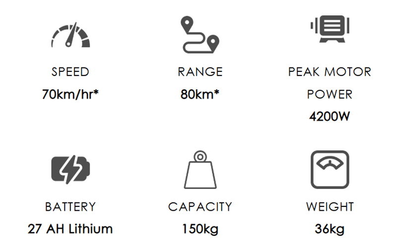 | Max Speed | 70 km/hr* |