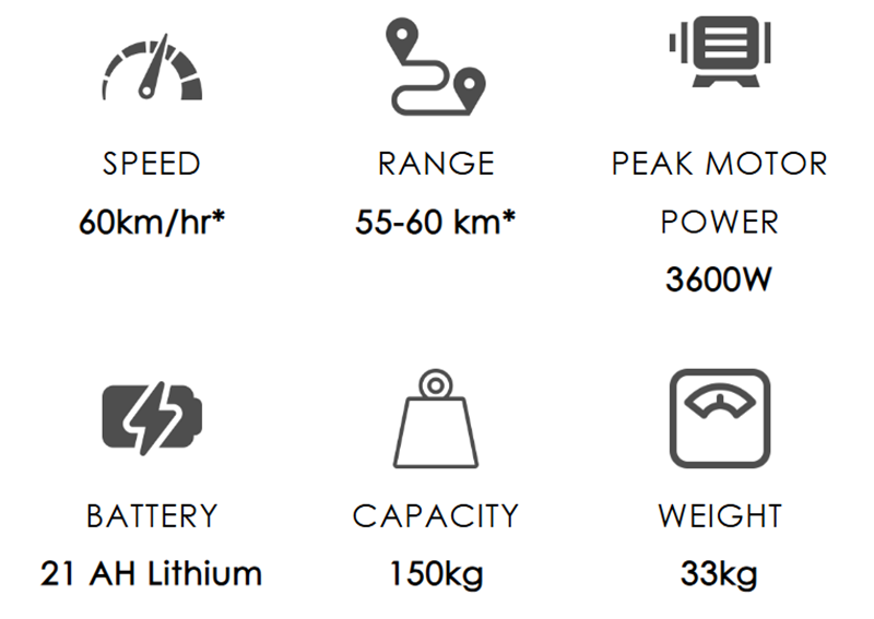 | MAX SPEED | 60km/hr* |