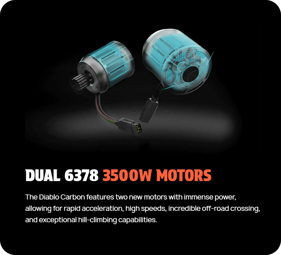 | Motor | Dual 6374 3500W rated (7000W total) custom brushless sensored motors |
