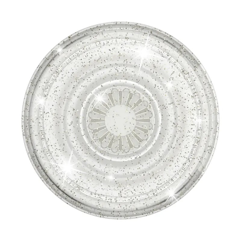 The PopSocket in clear glitter silver is a multifunctional phone accessory that provides a secure grip, comfortable handling, and a hands-free stand for smartphones and tablets. Its sparkling glitter design adds a stylish and eye-catching touch while enhancing one-handed usability.