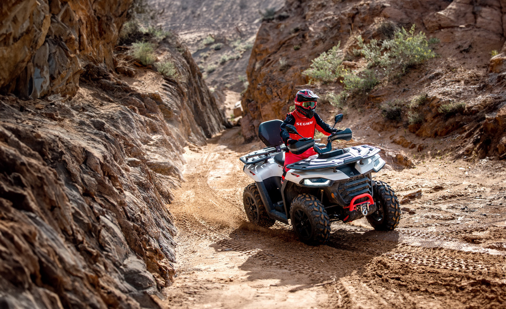 The front suspension is dual A-Arm with 7.1 in./ 180mm travel. The rear suspension has 7.9 in./210mm of travel. With 9.8 in./250mm ground clearance, the Segway AT5 L Quad Pro easily clears obstacles and makes your ride enjoyable and comfortable.