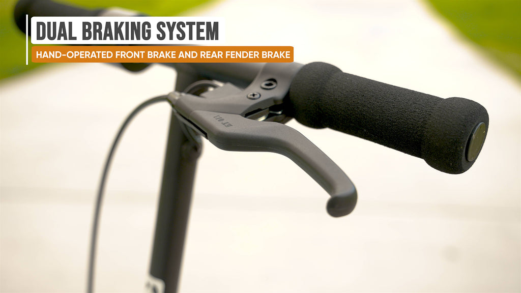 - Brakes: Hand-operated caliper front brake and rear-fender brake