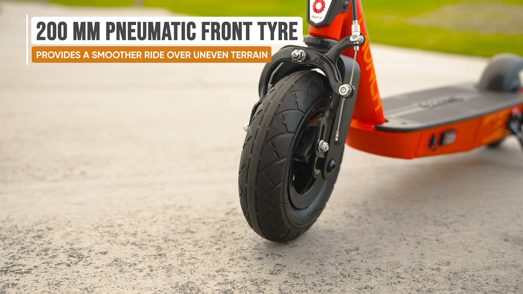 - Smooth Moves – An 8″ (200 mm) pneumatic front tyre delivers a smoother ride on uneven terrain.
