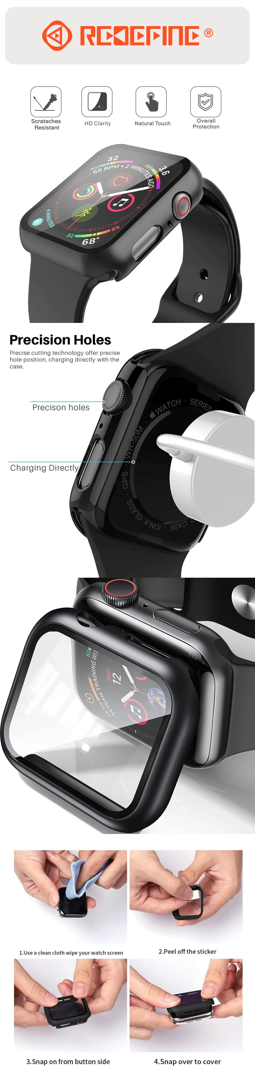 Precision-engineered to fit the Apple Watch perfectly, ensuring full coverage without adding bulk. -