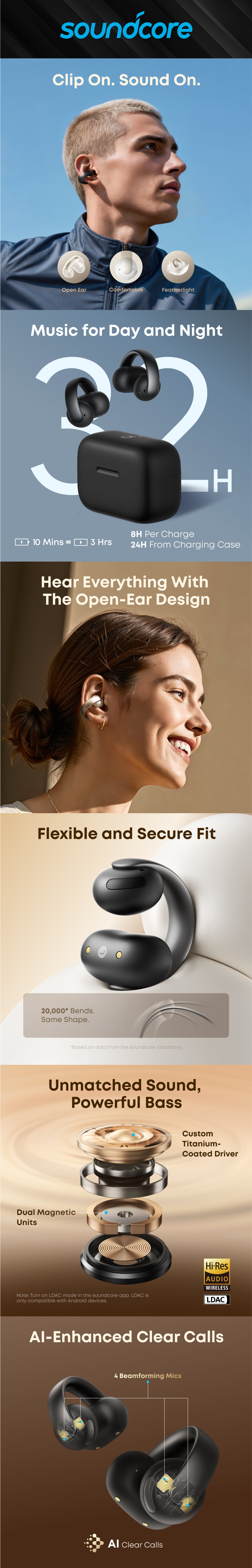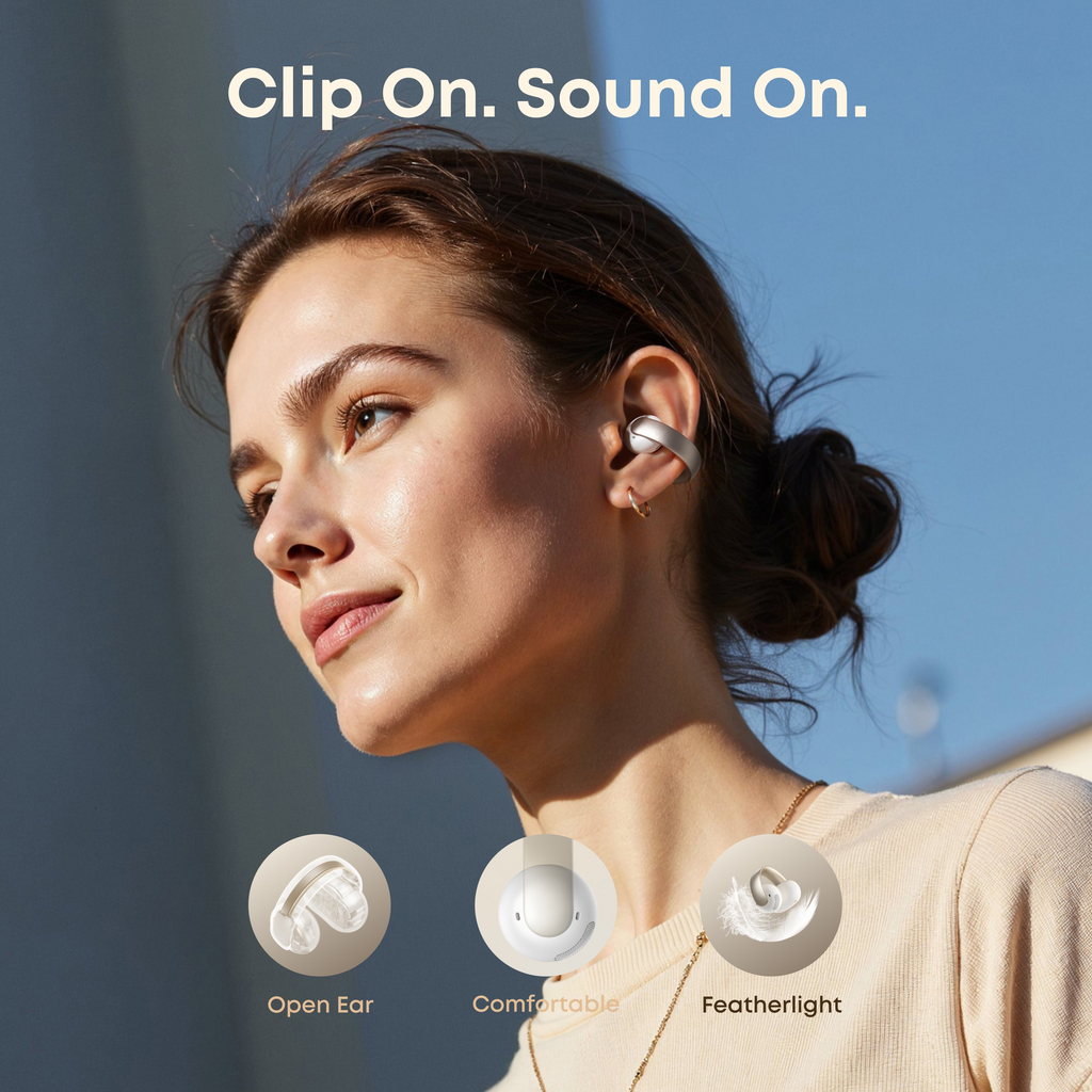 Open-ear clip-on design for pressure-free, all-day comfort