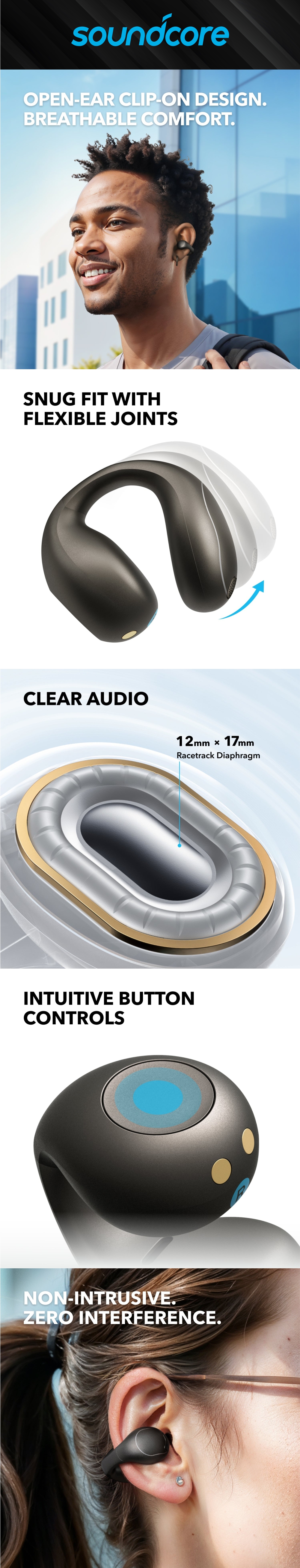 Soundcore C40i | Flexible Open-Ear Clip-On Earbuds