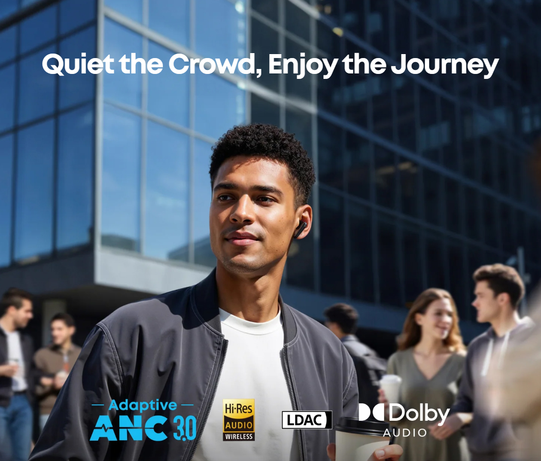 Adaptive ANC 3.0 adjusts noise cancellation every 0.3s³, while a purpose-built acoustic cavity dampens human voices, delivering 2x more effective voice reduction.3. Calculated based on the recalibration frequency of the ANC algorithm, which is three times per second when no audio is playing.