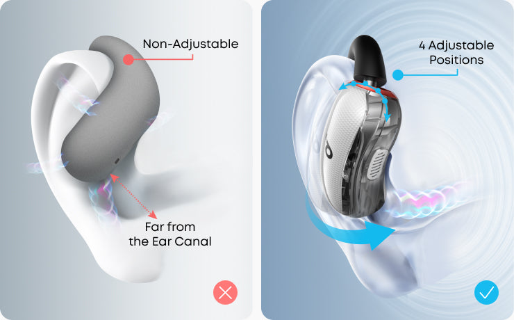 Non-adjustable ear hooks place the speaker too far from your ear canal, dulling every beat, while V40i brings the sound closer, delivering the bass you crave.*Data from the soundcore lab.