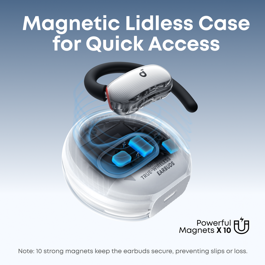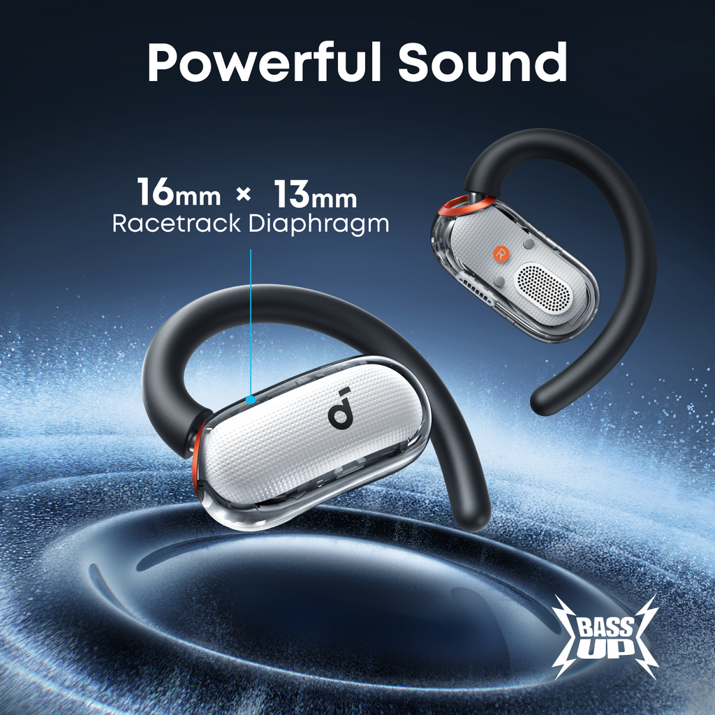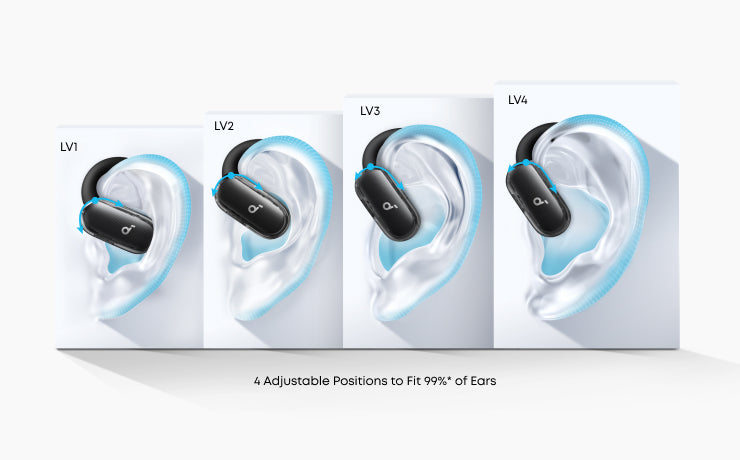Find the comfortable sweet spot in acoustics with 4 adjustable ear hook positions. Whatever your ear shape or size, enjoy powerful bass and a perfect, tailored fit.*Based on data from the soundcore lab.