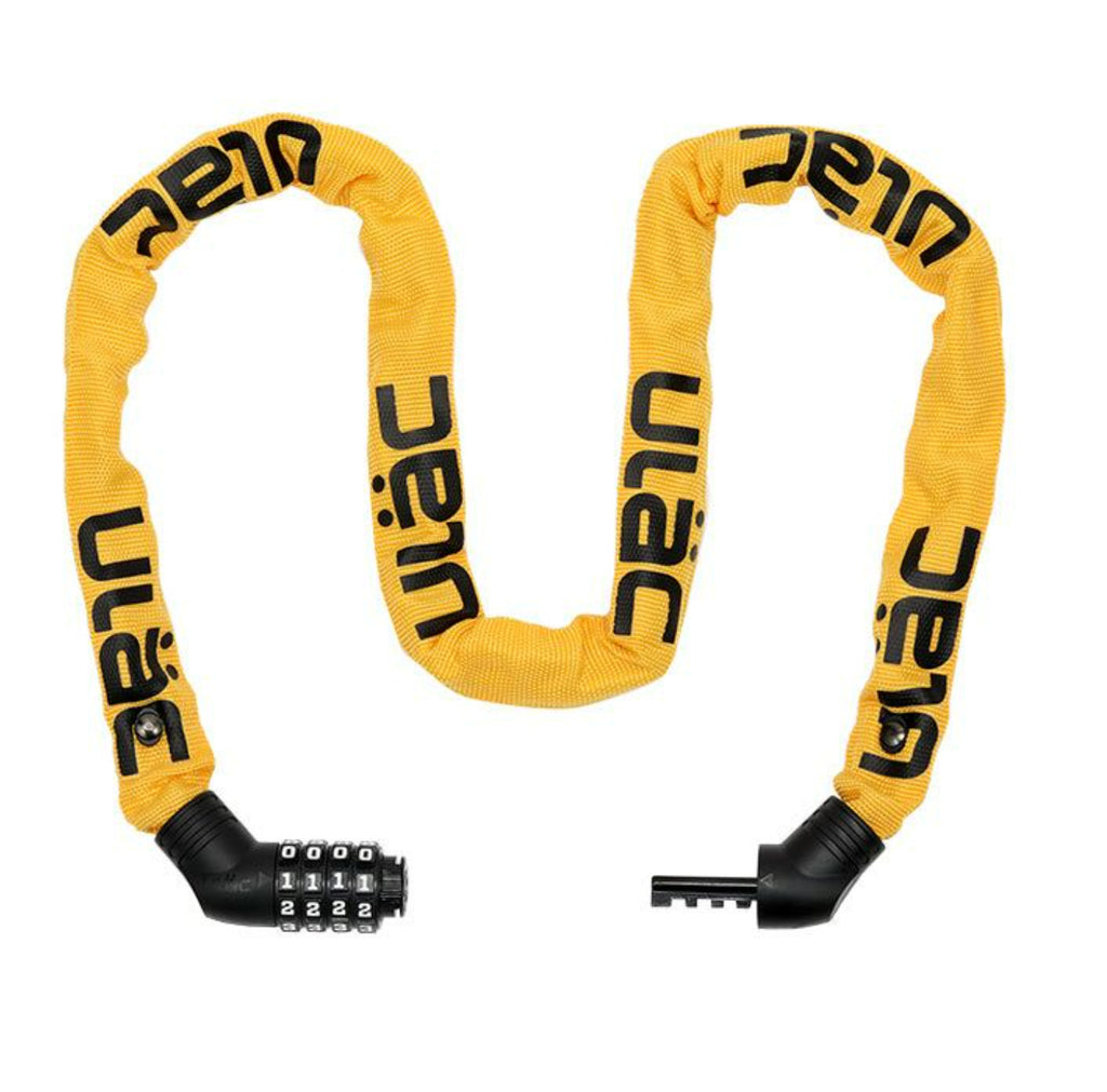 Includes ULAC velcro allows for easy storage, heat-treated hardened steel chain (for cutting + tensile resistance), resettable combination lock mechanism up to 10,000 unique combos, high quality nylon sleeve protects your bike from scratches, transport by wrapping the chain around top tube or seat post.