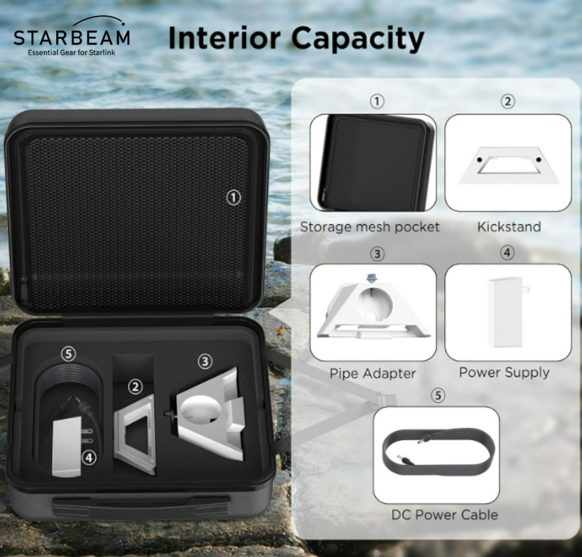 Portable Design: Equipped with a built-in handle, this compact yet spacious case accommodates the entire Starlink Mini set for secure, convenient transport.