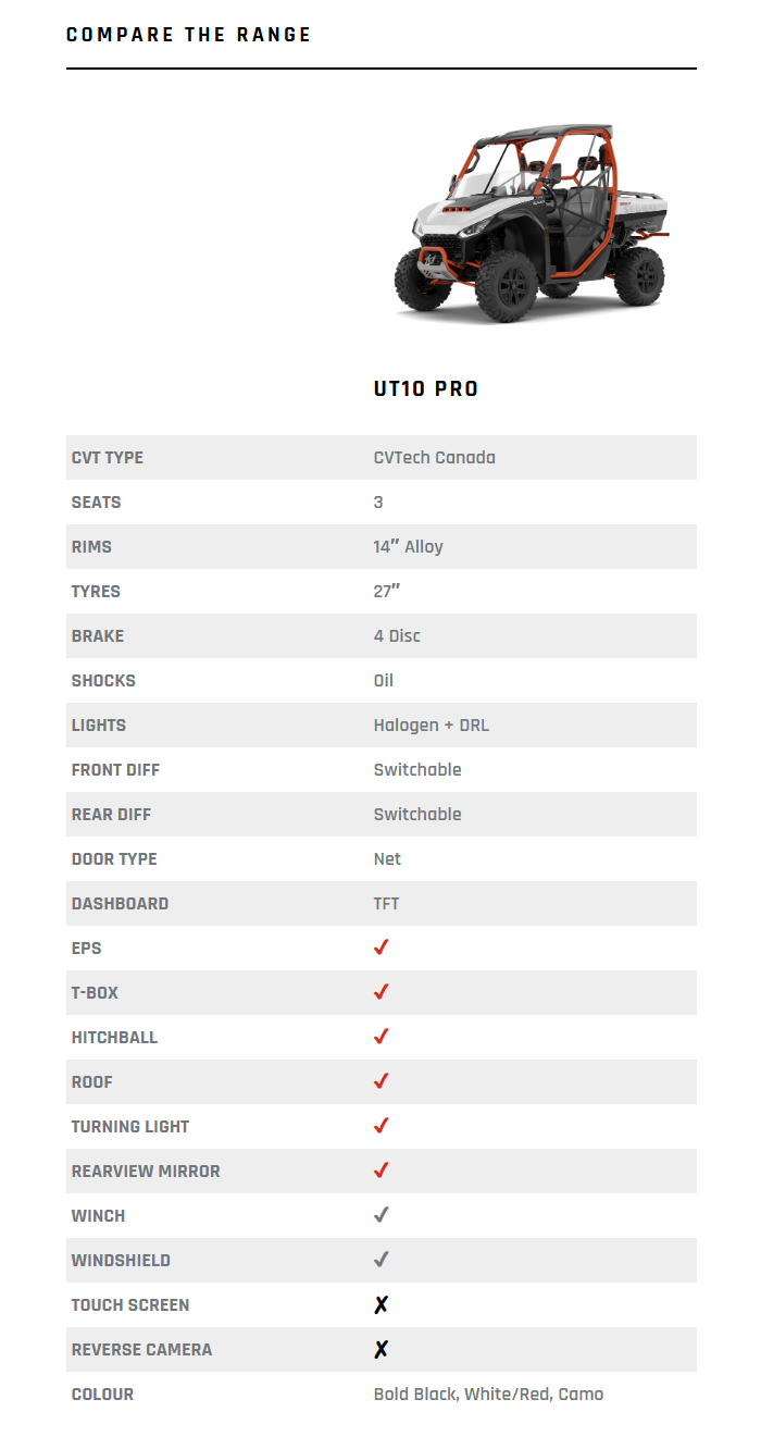 Experience uncompromised utility with the UT10 Navigator. This rugged workhorse boasts a tilting bed box with an impressive load capacity of 450kg, making heavy lifting a breeze. With a remarkable payload capacity of 680kg and the ability to tow up to 1,134kg, it’s your trusted companion for handling tough tasks on the farm, job site, or wherever your adventures take you. The UT10 Navigator is built to tackle the most demanding challenges with ease and efficiency.