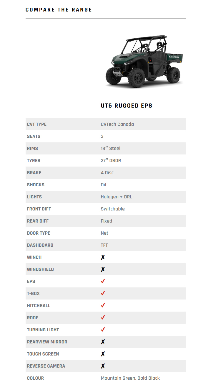 Segway’s Smart EPS System is designed with standard/comfort/sport modes that will adjust automatically according to traction conditions. The Segway Fugleman is ready to conquer any terrain. The EPS can be switched on-the-fly to one of the three settings, selectable through the app. The ride is customisable for different drivers, terrain and road conditions.